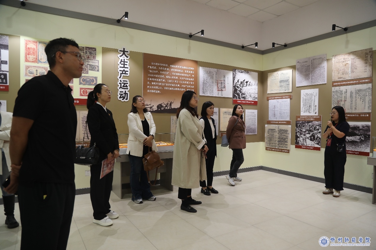 活动中,在讲解员的引导下,我校教师循着历史脉络,有序参观各个展区。展览系统梳理并生动呈现了忻州地区在抗战时期的重要战略地位、波澜壮阔的斗争历程与不可磨灭的历史贡献。展出的内容包括忻州抗战重大事件档案、重大战役战斗档案以及老一辈无产阶级革命家起草的电报、书信、讲话、题词等资料,既有文献、照片、报纸等档案,又有实物档案,有力展现了忻州抗战的光辉篇章。